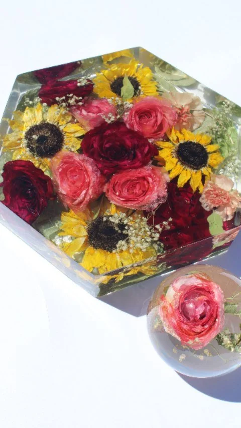 At Designs by Maha, we create custom resin keepsakes that turn your special blooms into a beautiful, lasting memory. We would be truly honored to help you treasure them for years to come.