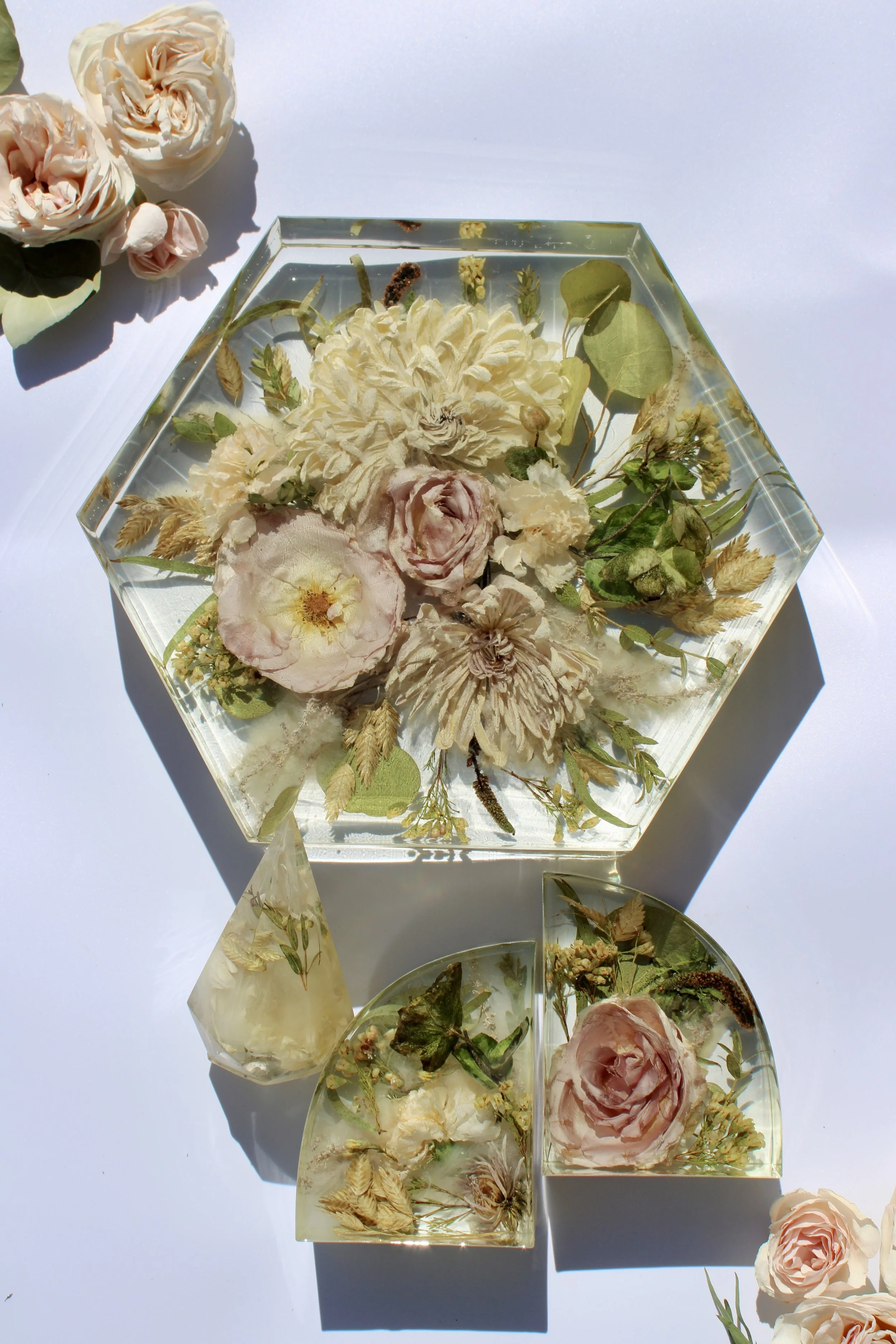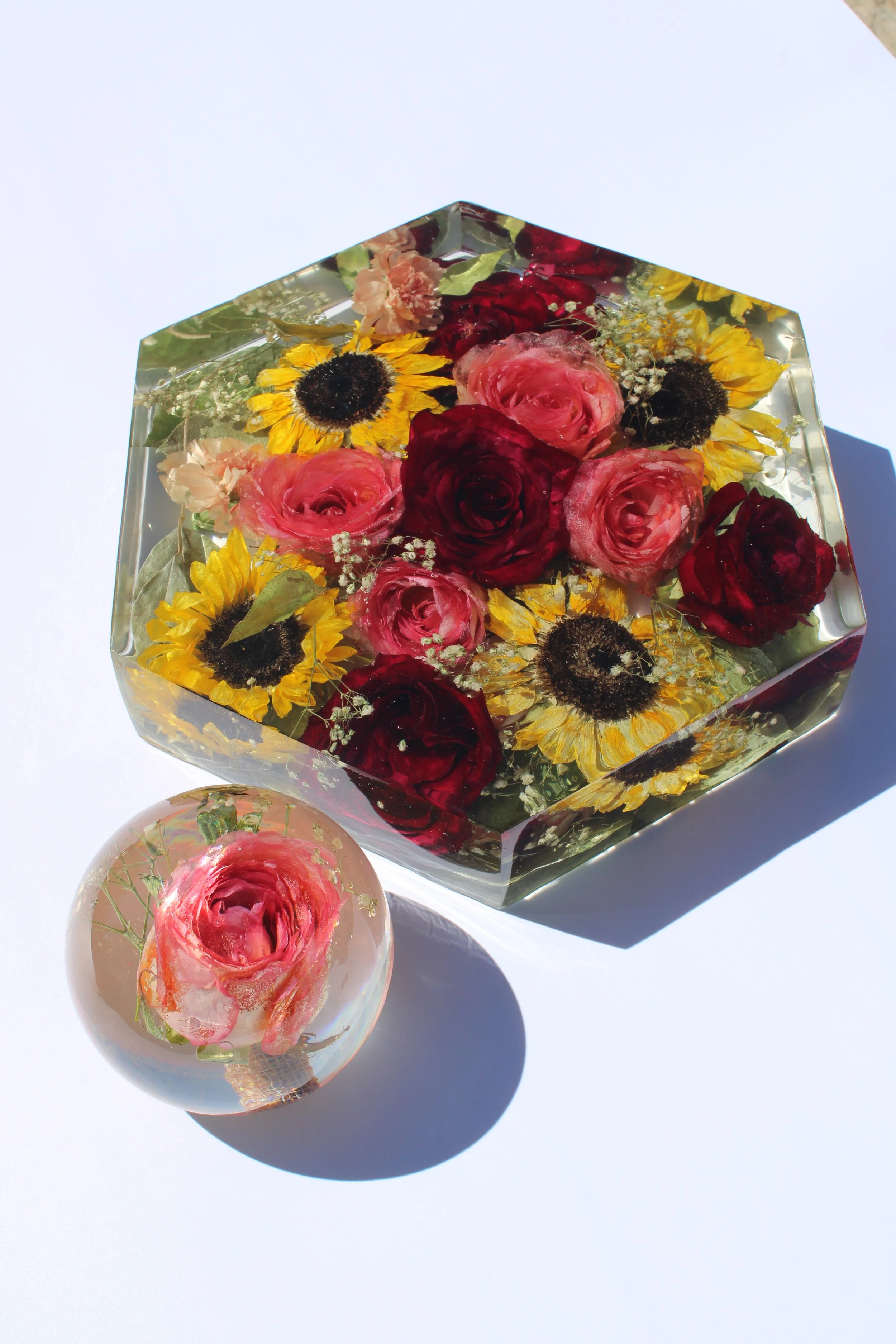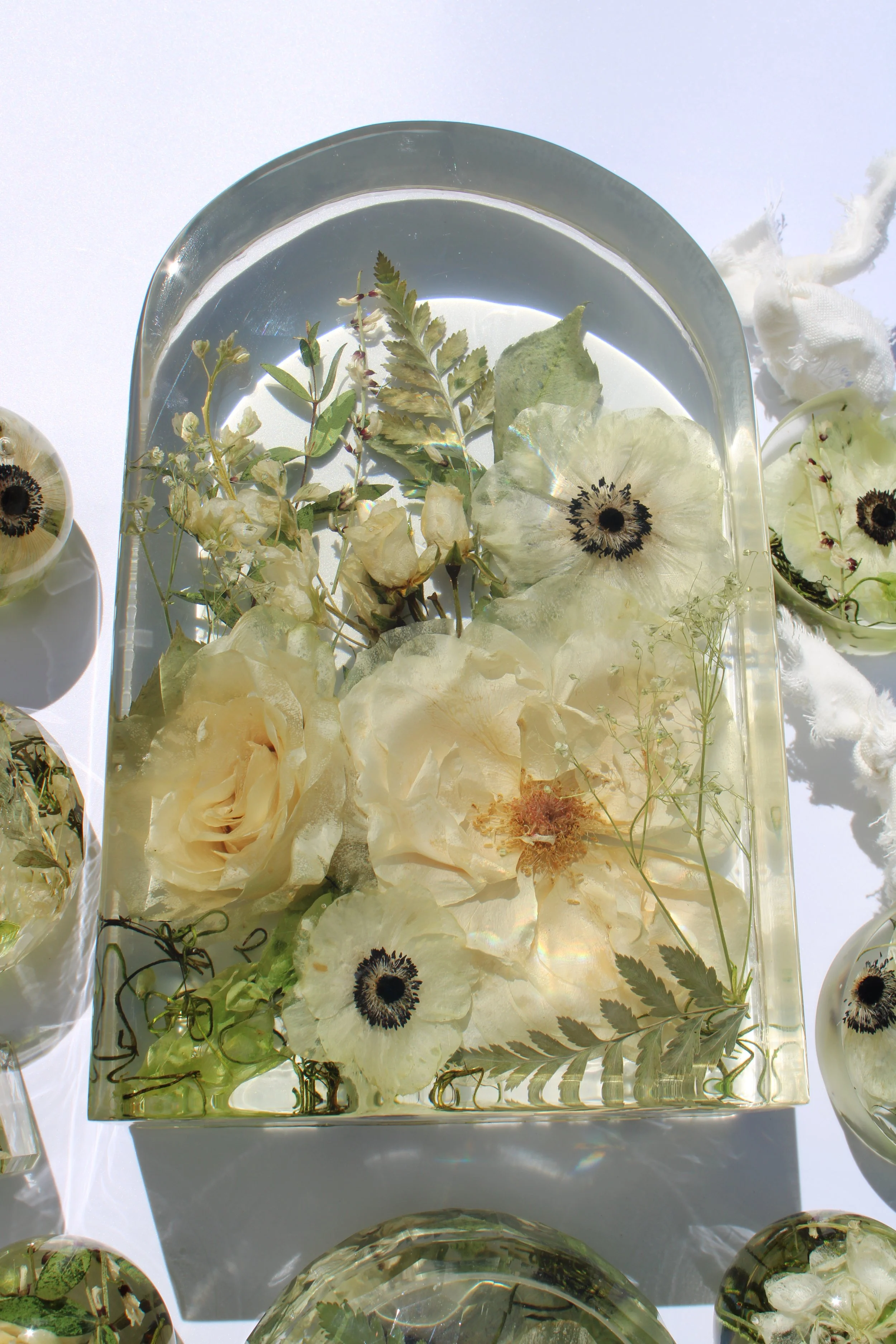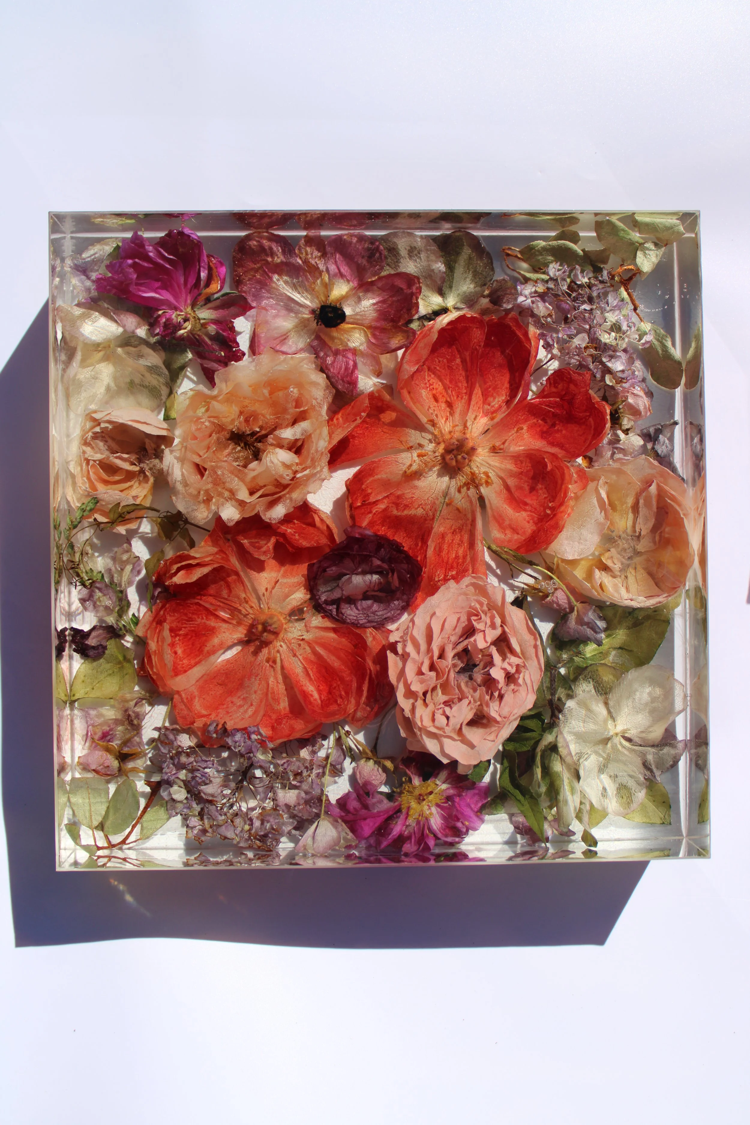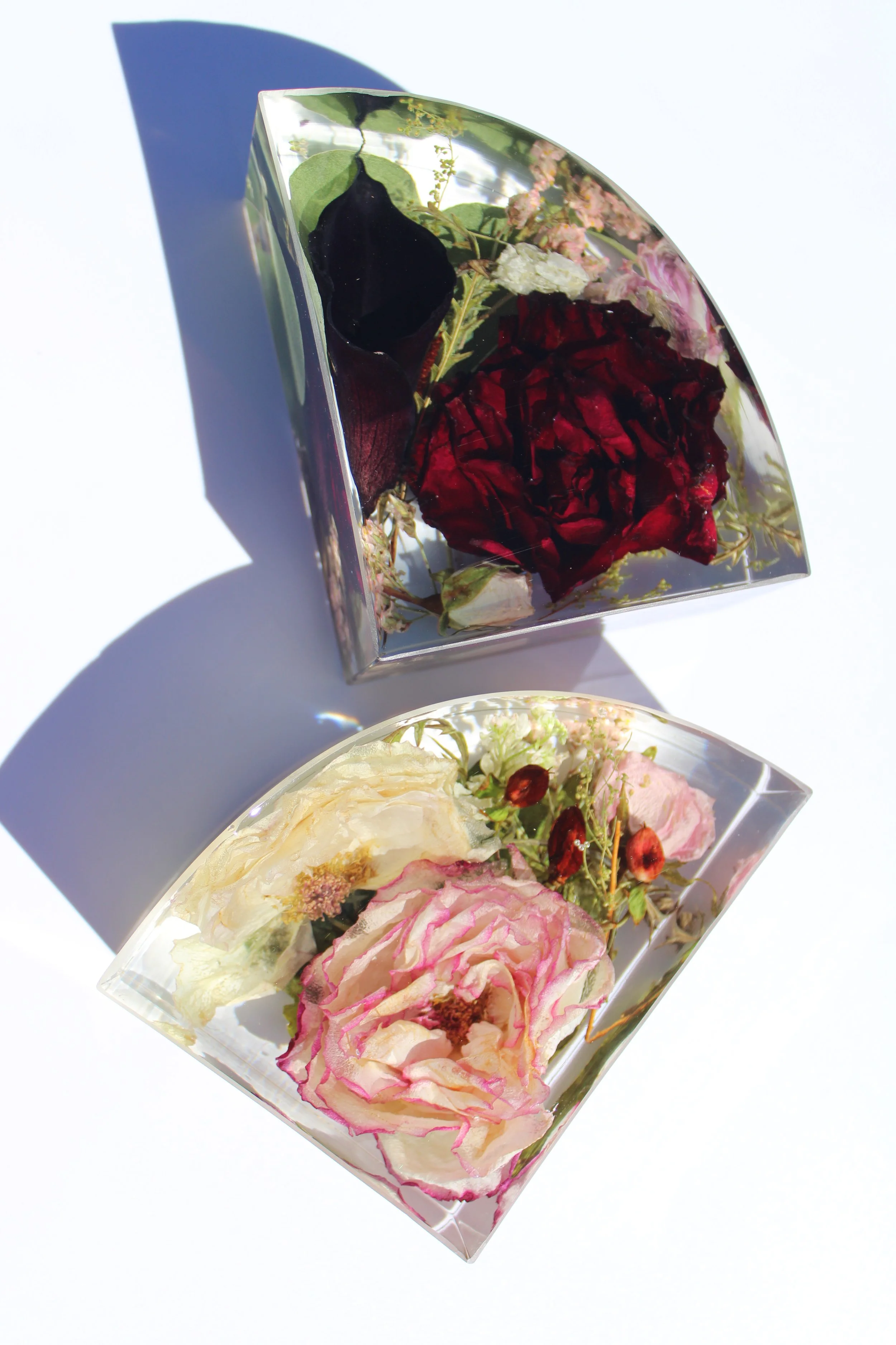 Looking for the perfect way to display your entire bouquet? Resin blocks are a fantastic option, able to hold most or all of your special flowers.