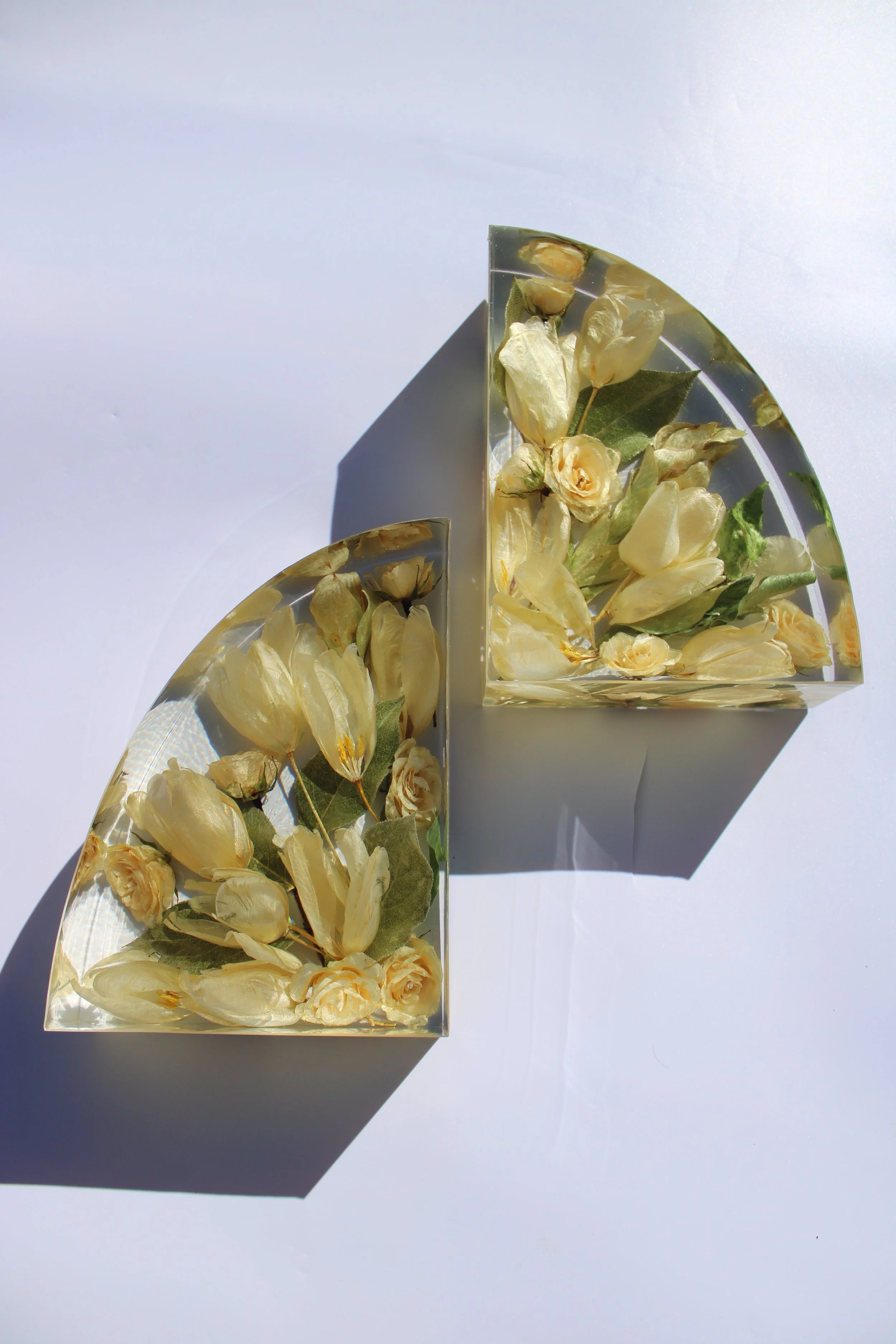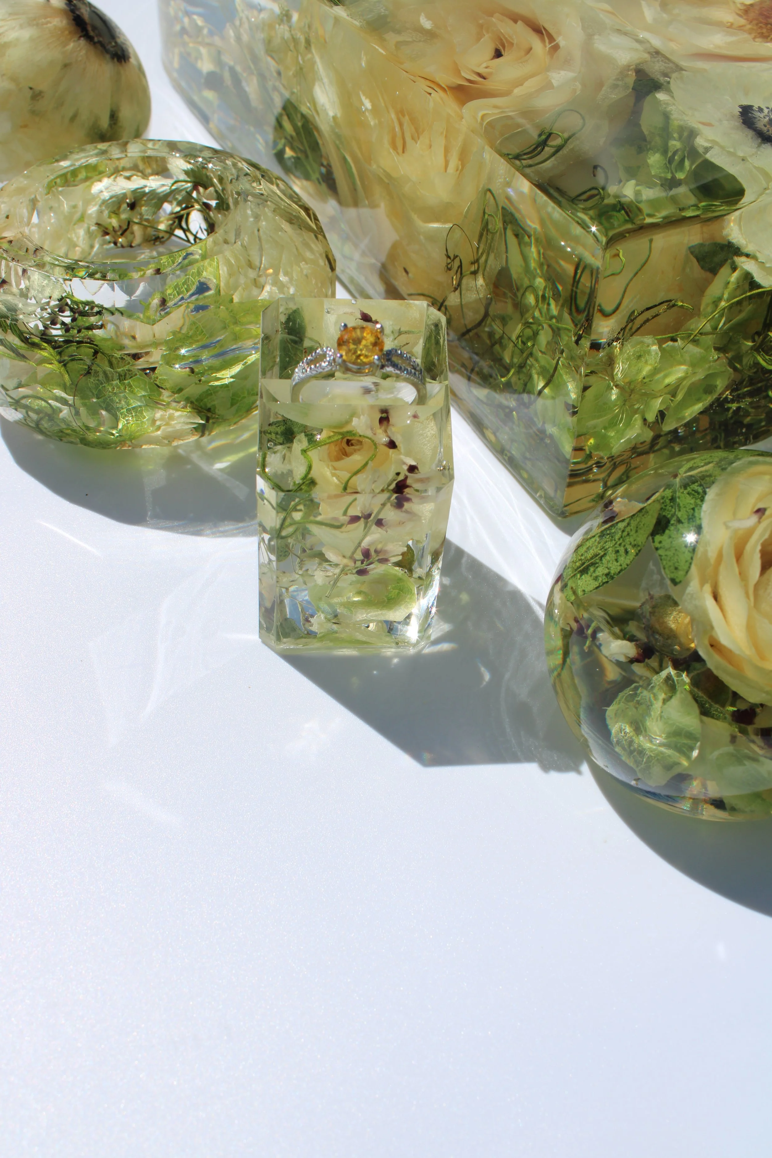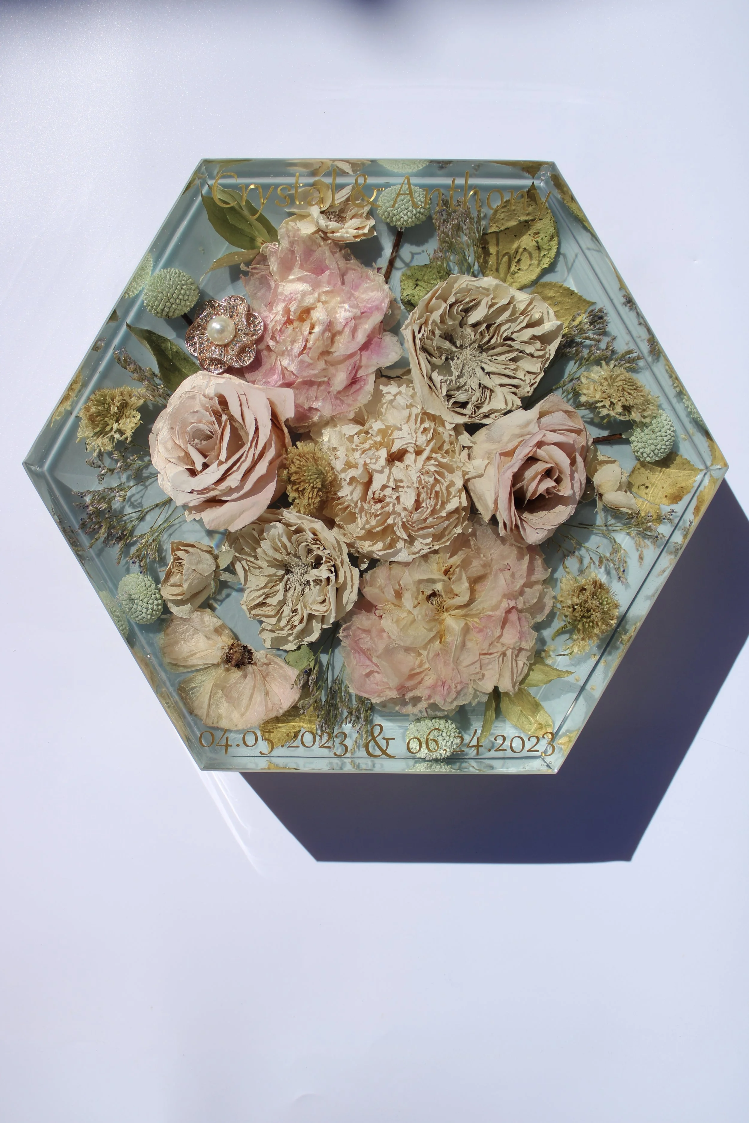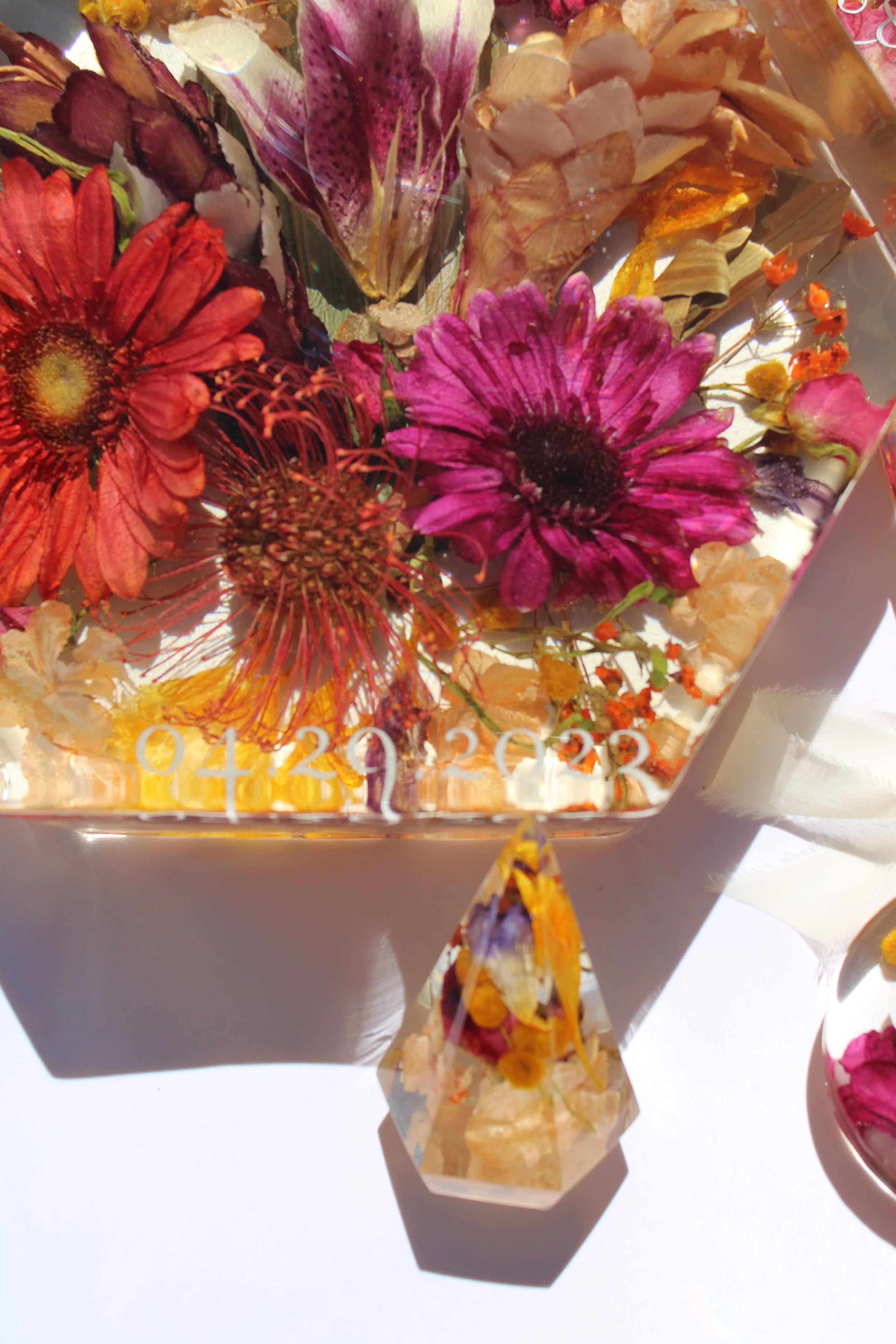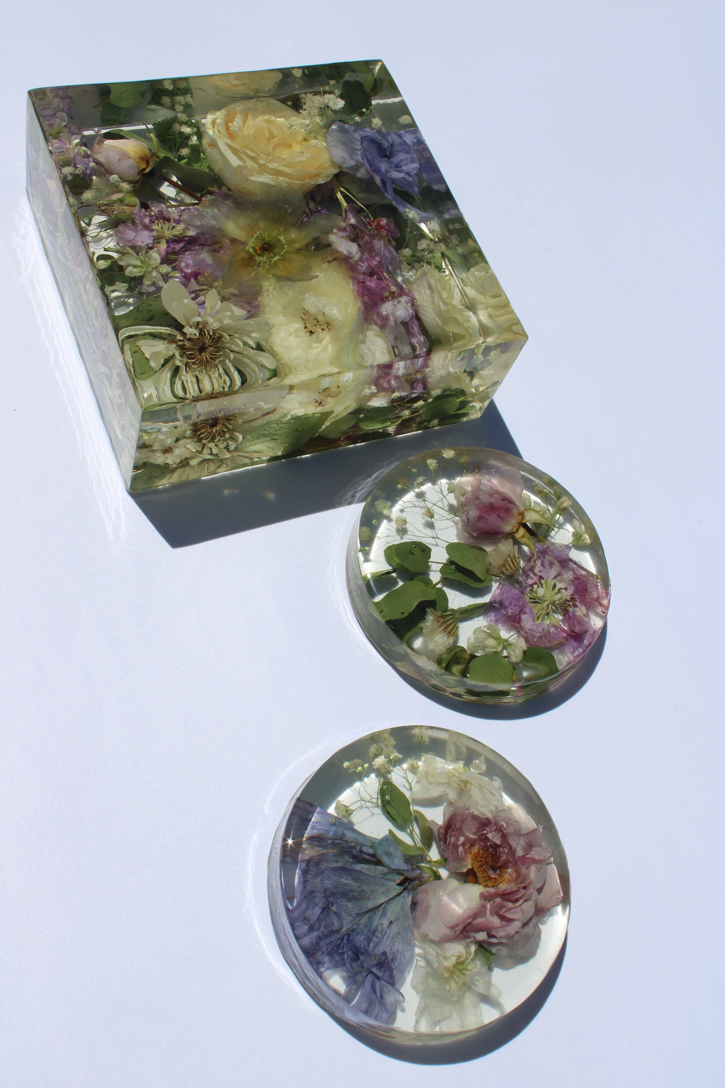 Looking for the perfect way to display your entire bouquet? Resin blocks are a fantastic option, able to hold most or all of your special flowers.