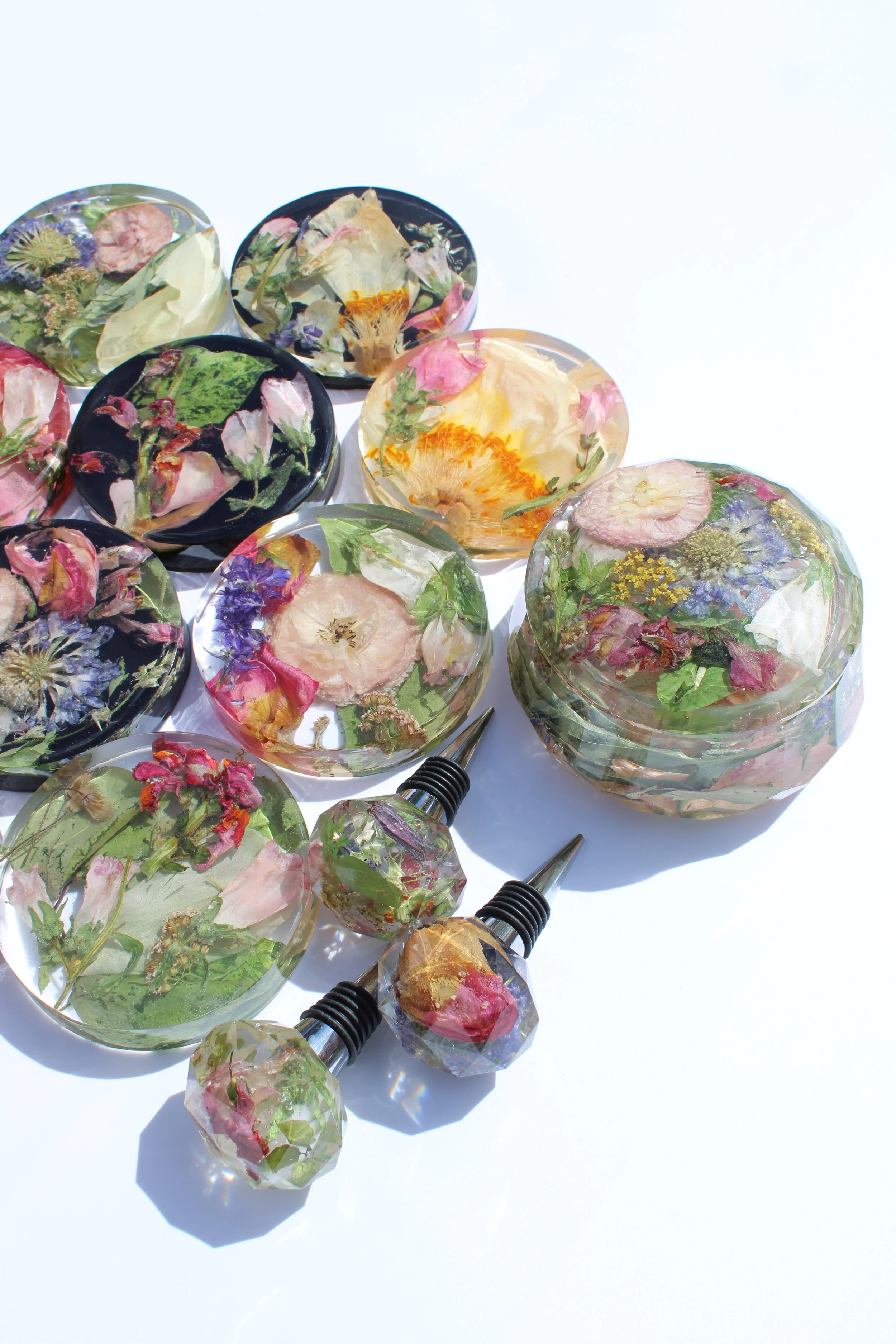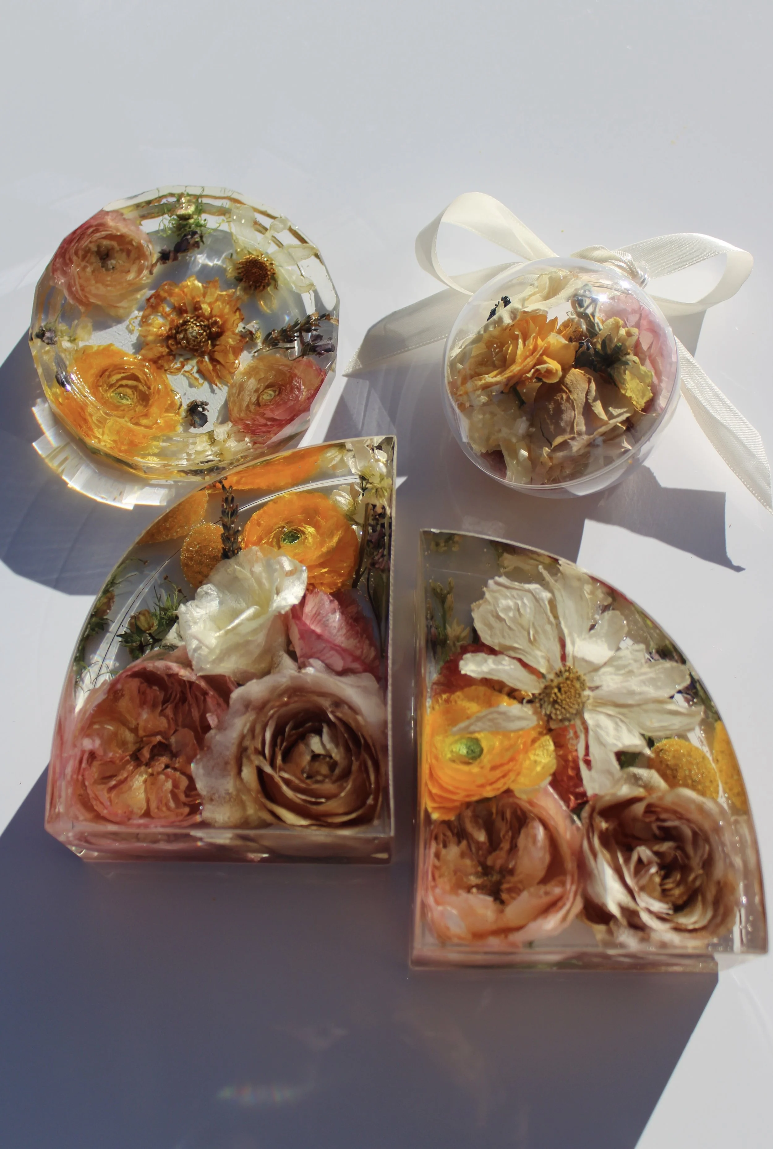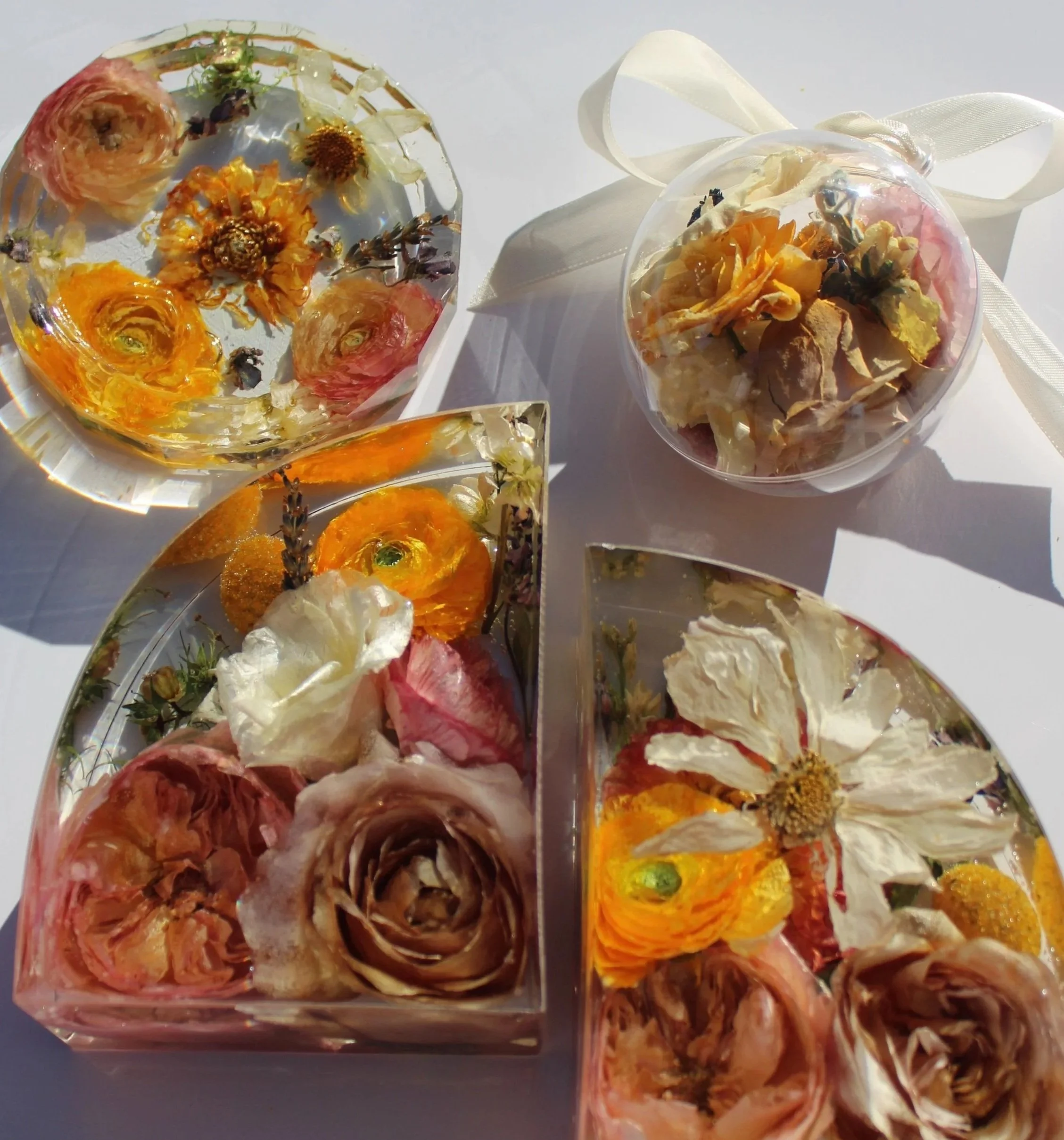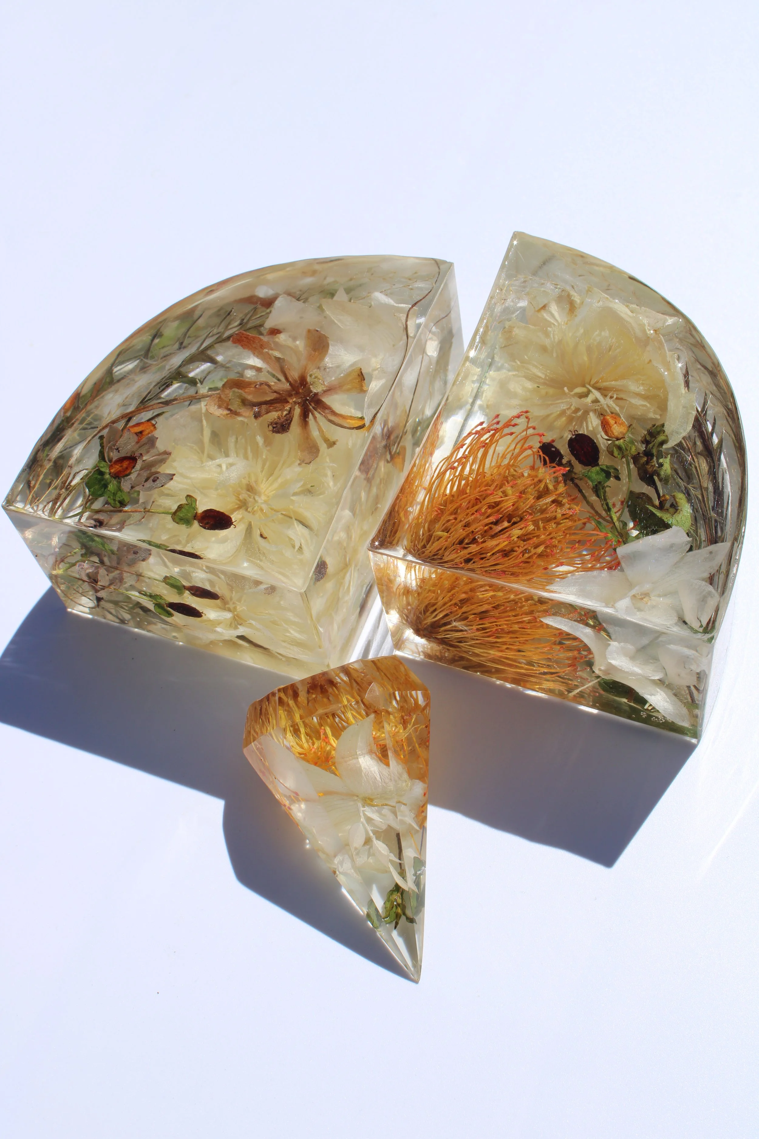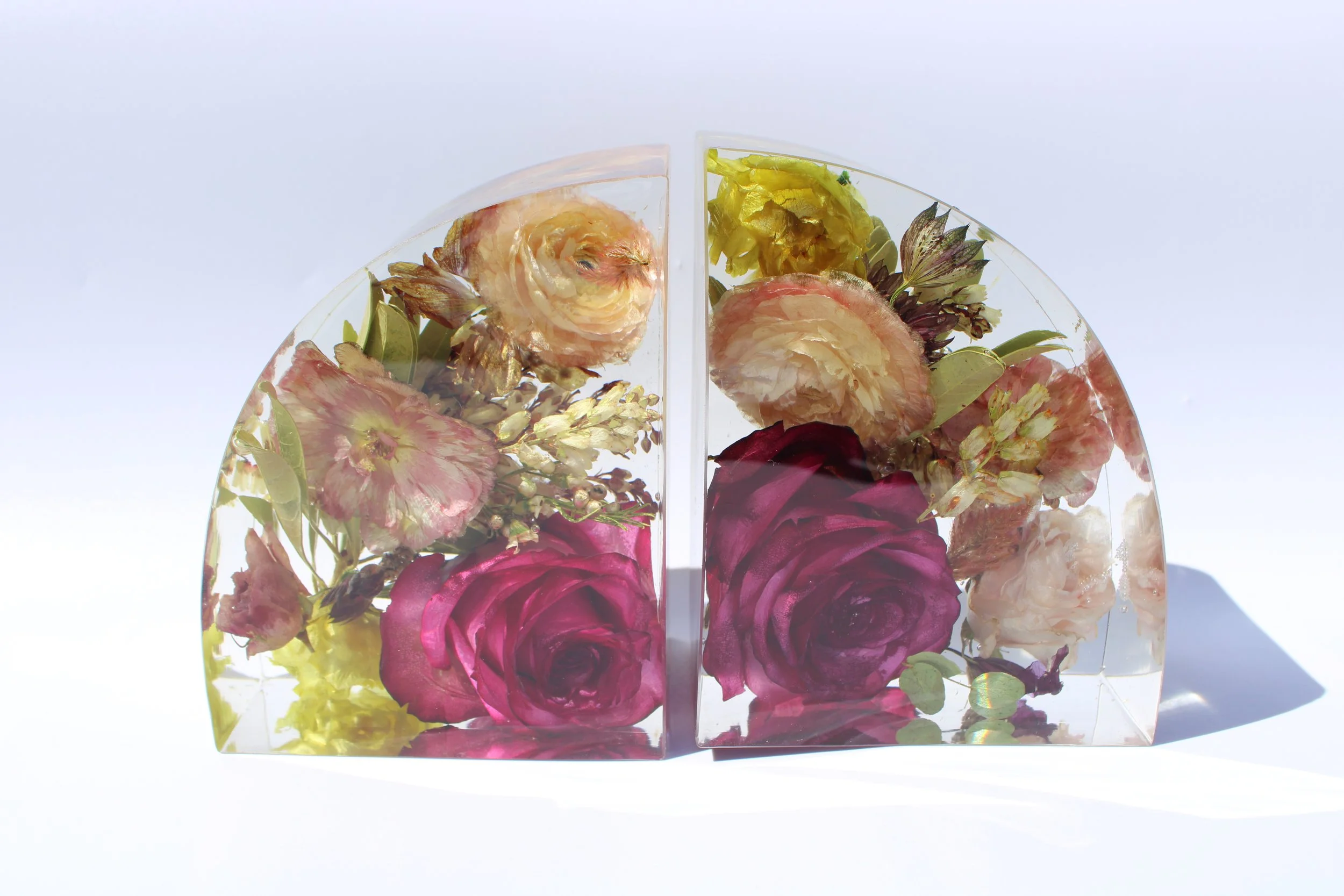 Looking for the perfect way to display your entire bouquet? Resin blocks are a fantastic option, able to hold most or all of your special flowers.