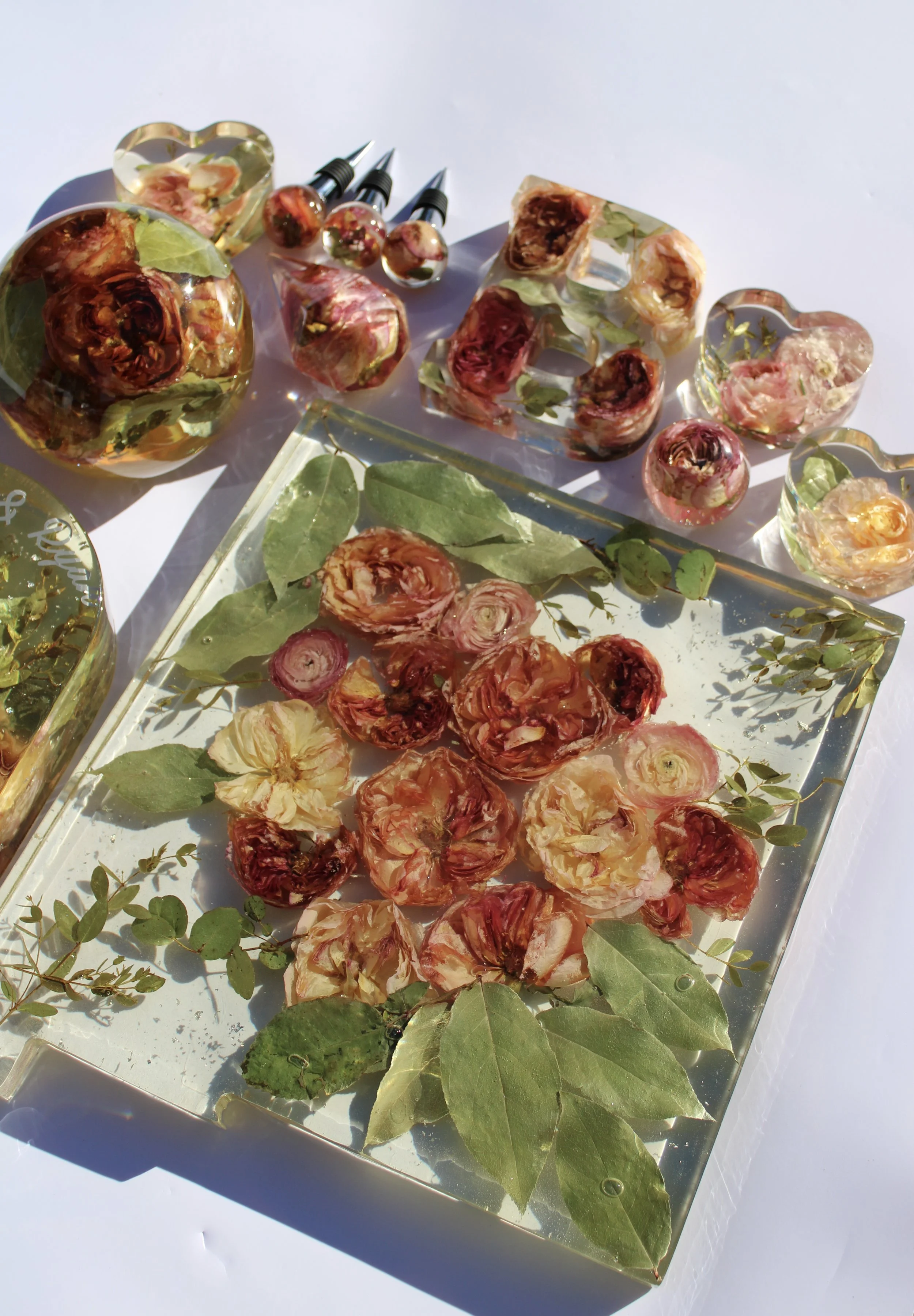 Most of our trays are two inches deep, so they are best for pressed or low-profile flowers. While roses have a high profile, we can dry them in a way that makes them fit beautifully.
